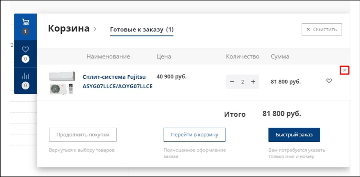 Чтобы удалить из ненужные позиции, наведите курсор на символ «Х», справа от наименования товара